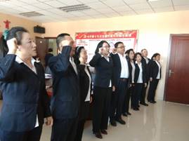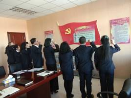 会议开始,在党支部书记的带领下,全体党员身着正装,重温入党誓词,仪式上,全体党员右拳高擎,神情庄重,面对鲜红的党旗郑重宣誓,抒发对党的忠诚,践行党的宗旨,维护党的形象和亲切情怀。嘹亮的誓言徘徊在会议室中,深埋在每一位党员的心中。