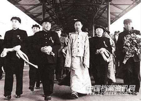 图为周恩来(左一)、朱德(左二)、李济深(左四)同班禅额尔德尼·确吉坚赞(左三)步出北京火车站。