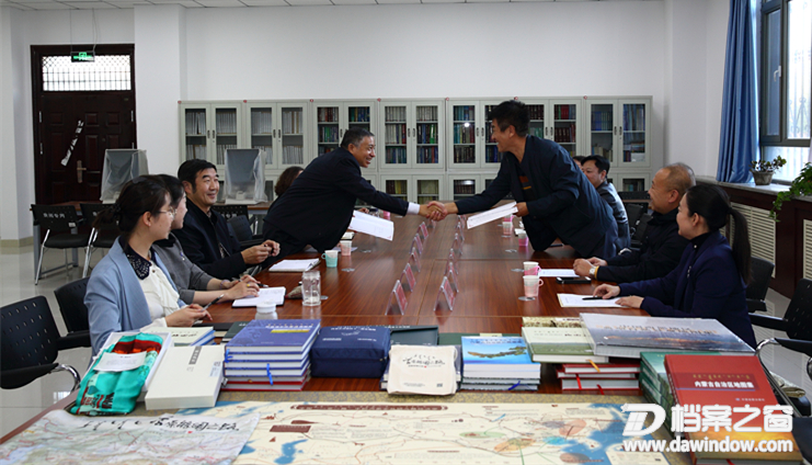 张帅对内蒙古测绘地理信息局此次赠送之举及对我馆的信任表达了谢意。他表示,今年是内蒙古档案馆建馆60周年,多年来档案馆不断改进、完善库房安全保管设施、设备及档案管理制度,加强档案防火防灾的管理措施,自治区档案馆有信心也有能力保障好馆藏档案的安全,同时为档案查阅者提供更加便利的查档环境。他提议,希望双方能继续深入合作,共同促进档案工作发展。
