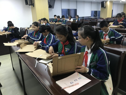 在接下来的家庭档案整理环节,“小档”老师示范了折档案盒的过程,同学们跟着老师一起,按规范要求将档案盒折叠完毕。