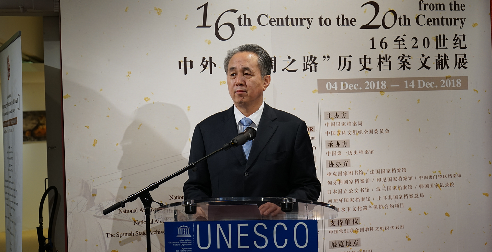 16世纪至20世纪初中外丝绸之路历史档案文献展亮相巴黎联合国教科文组织总部