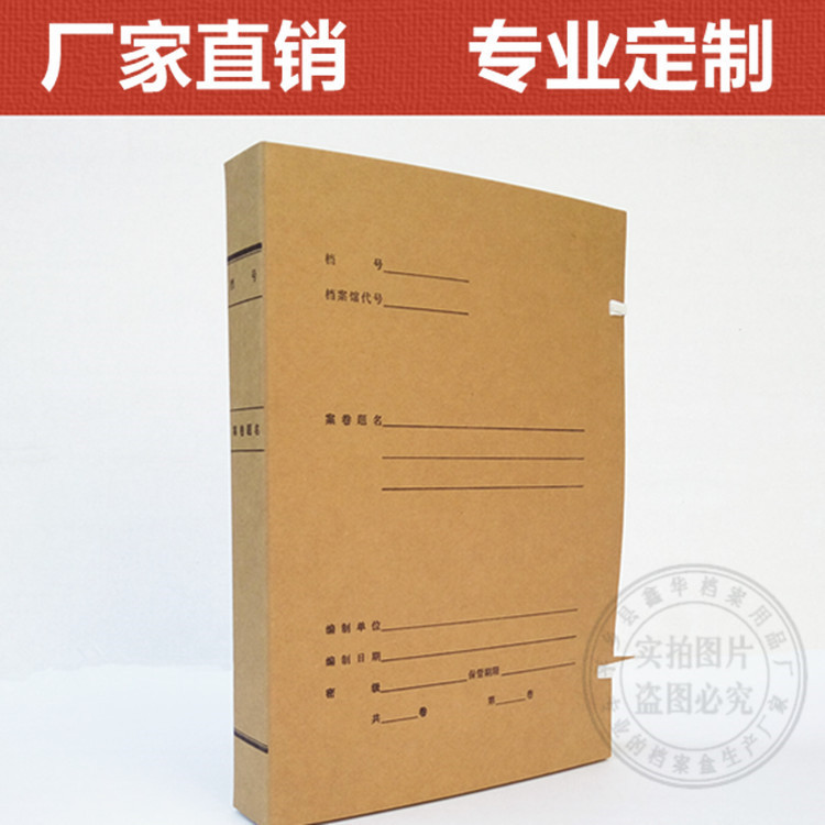 20年从业经验,专业定制档案盒,现已发展成为行业领军型企业。客户遍布全国各地,已于多家档案局建立长期合作关系,所做产品深受广大客户认可。 本厂可根据客户要求定制各种规格样式牛皮纸档案盒 保证质量。我们郑重承诺:所有在我厂定制客户收到货;发现没有按要求定制或者有质量问题的,我们可以无条件退换货。免除客户的后顾之忧。