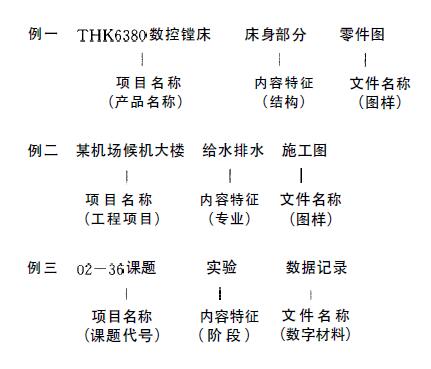 在结构上,案卷题名一般由三个部分组成:一是项目名称,即案卷内科技文件所属工程、产品、课题或设备等的名称或代号;二是案卷内科技文件的内容特征,如机械产品某组成部分的文件(结构特征),工程设计某设计阶段的文件(阶段特征),等等;三是科技文件名称特征,即文种,如装配图、明书、计算书、实验记录、成果报告、学位论文等。