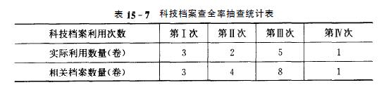 比如,某抽查小组抽查了某档案部门的4份利用申请单,在这4次利用过程中用户实际利用科技档案数量以及由抽查小组经分析确定的相关科技档案数量,如表15-7所示。