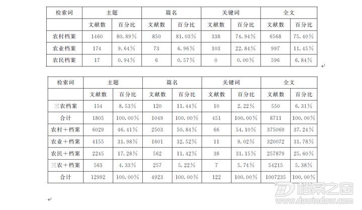 同时与农村和档案有关的2个,“三农”档案7篇,三农档案1篇。