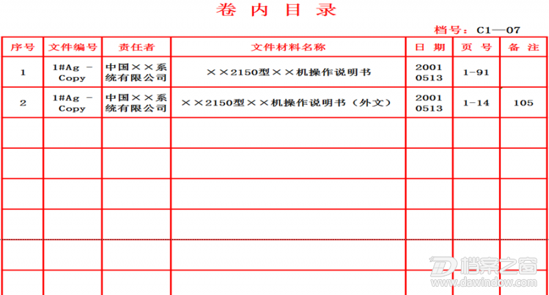 卷内目录是登录案卷内文件提名及其他特征并固定文件排列次序的表格,排列在卷内文件材料首页之前。